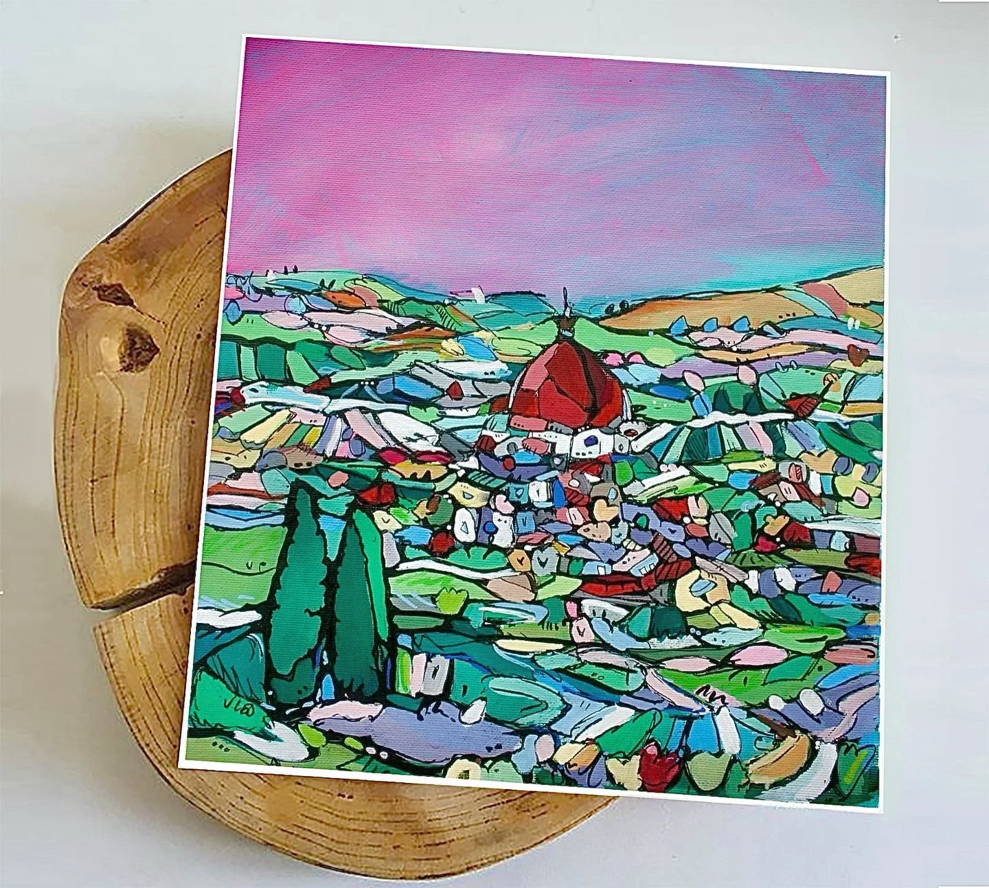 Painting on canvas, wrapped onto a heavy foam board, ready to go into frame
